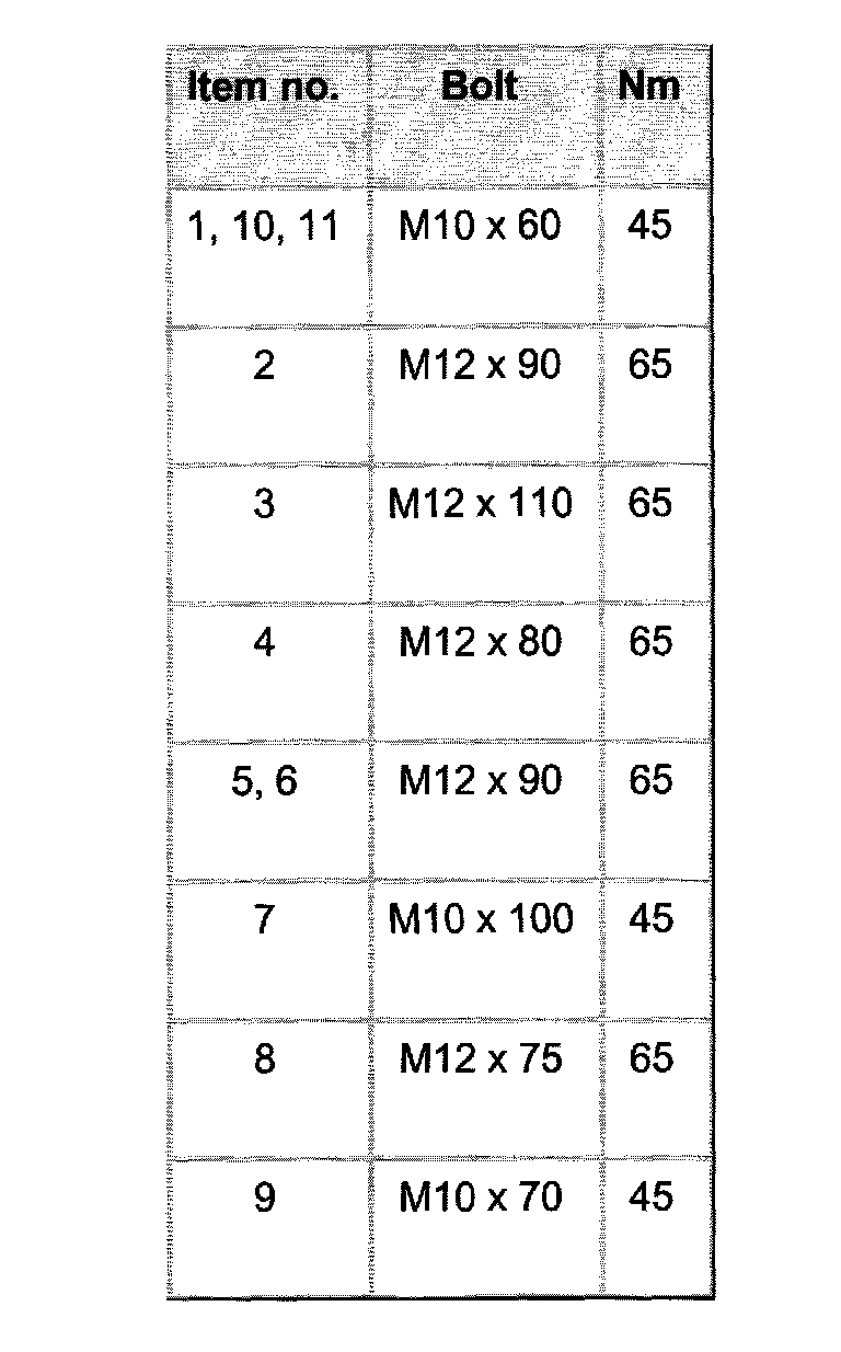 Tightening torques