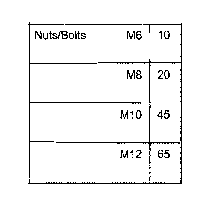^ Tightening torques are valid only for nuts and bolts that are lightly greased, oiled, covered with a thin coat of phosphate or blackened.