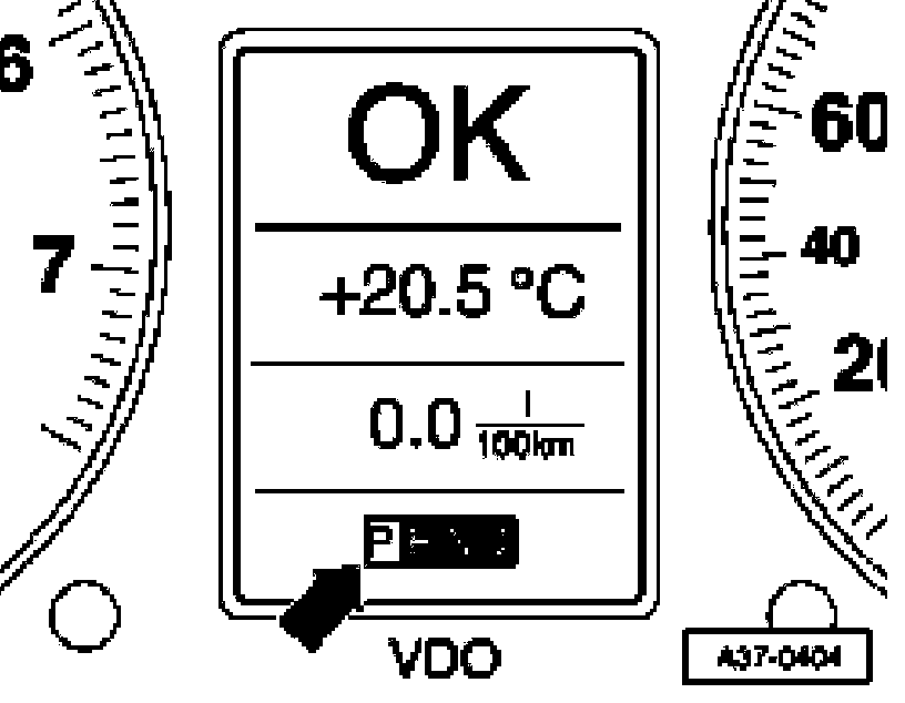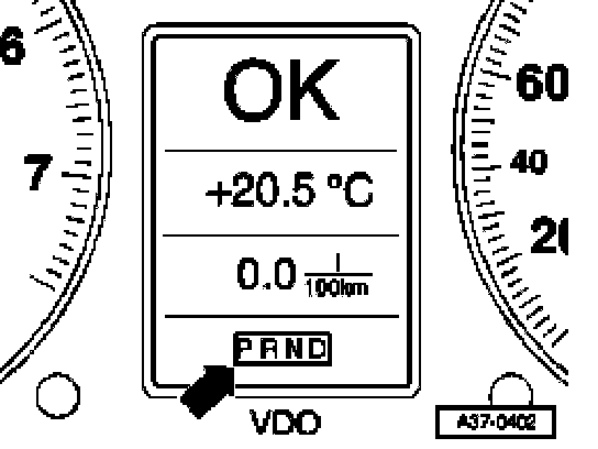 1 - The trouble code is stored and a substitute program allows the vehicle to continue to be driven (with some limitations). The driver is not alerted to this condition, since it is not critical to safety nor for the transmission. The transmission range display in the instrument cluster indicates as normal the particular range that has been selected -arrow-. The driver may notice a difference in vehicle driveability and contact an authorized dealer.