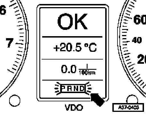 3 - A flashing transmission range indicator in the instrument cluster points to a serious malfunction in the transmission -arrow-. The condition is critical to safety or for the transmission.