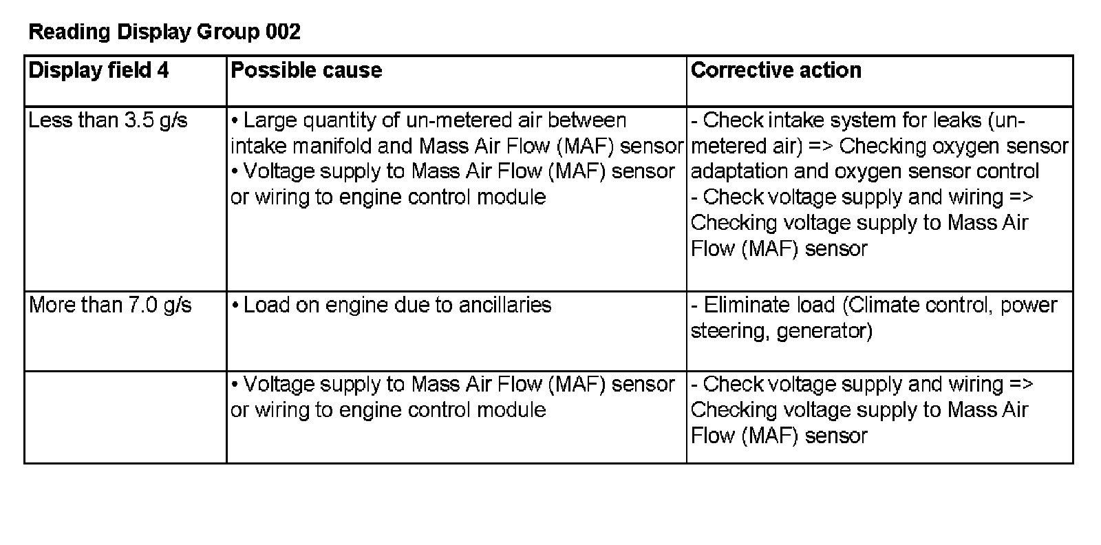 - If wiring and voltage supply are OK, replace Mass Air Flow (MAF) sensor -G70.
