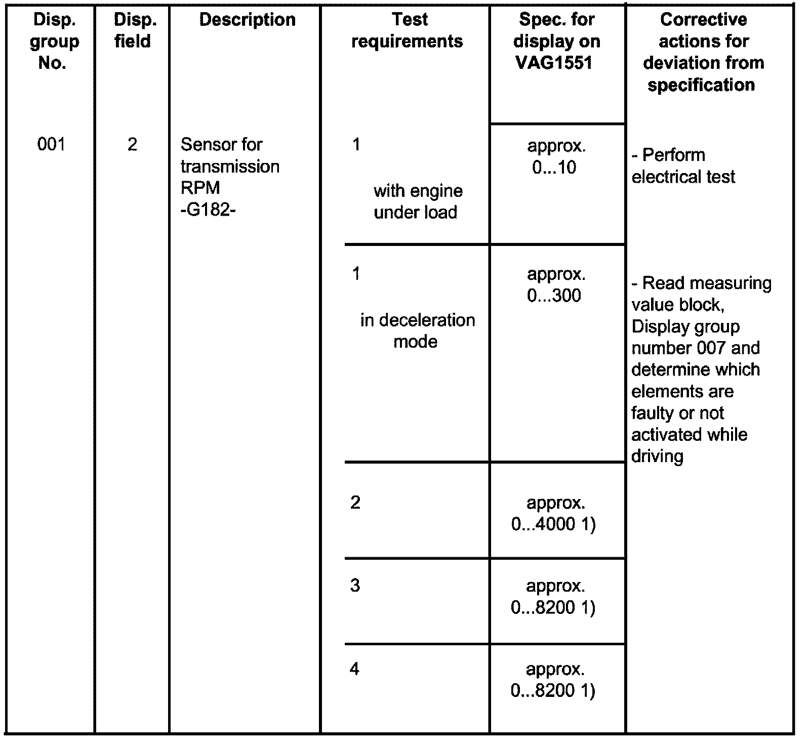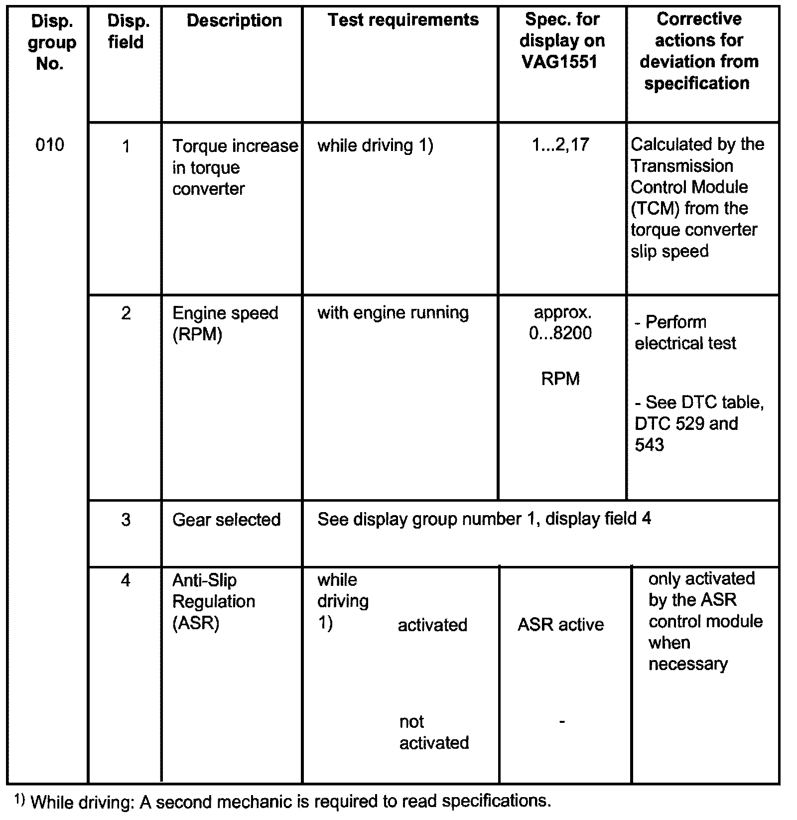 ^ Engine intervention is only activated during the shifting process. Depending on the driving situation, engine intervention may only be activated briefly, i.e. the relatively slow data transfer to the VAG1551 can miss this brief engine intervention under certain driving conditions.