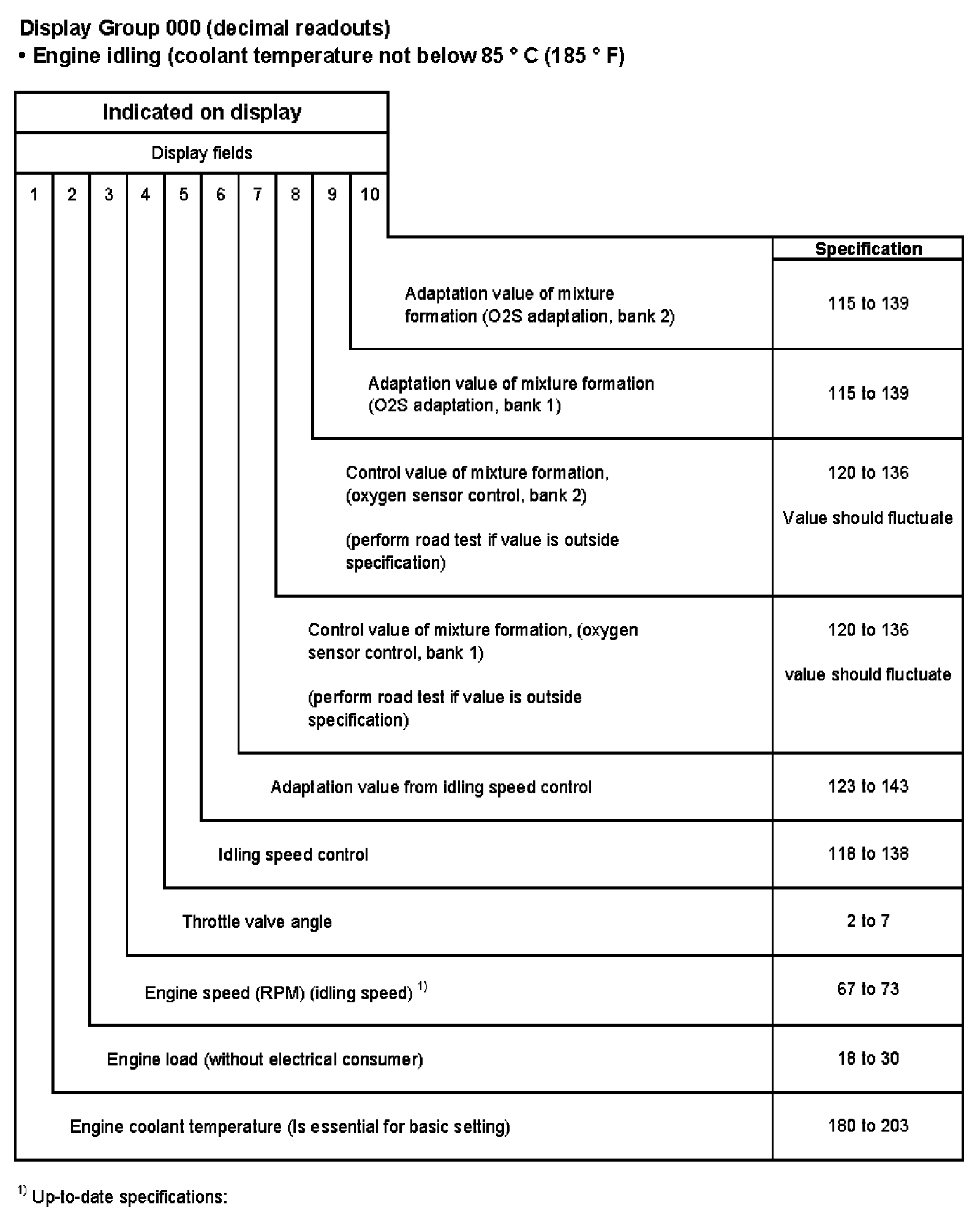 - Allow engine to idle for a few minutes; coolant temperature at least 85 ° C (185 ° F) (at least 180 in display fields 1).