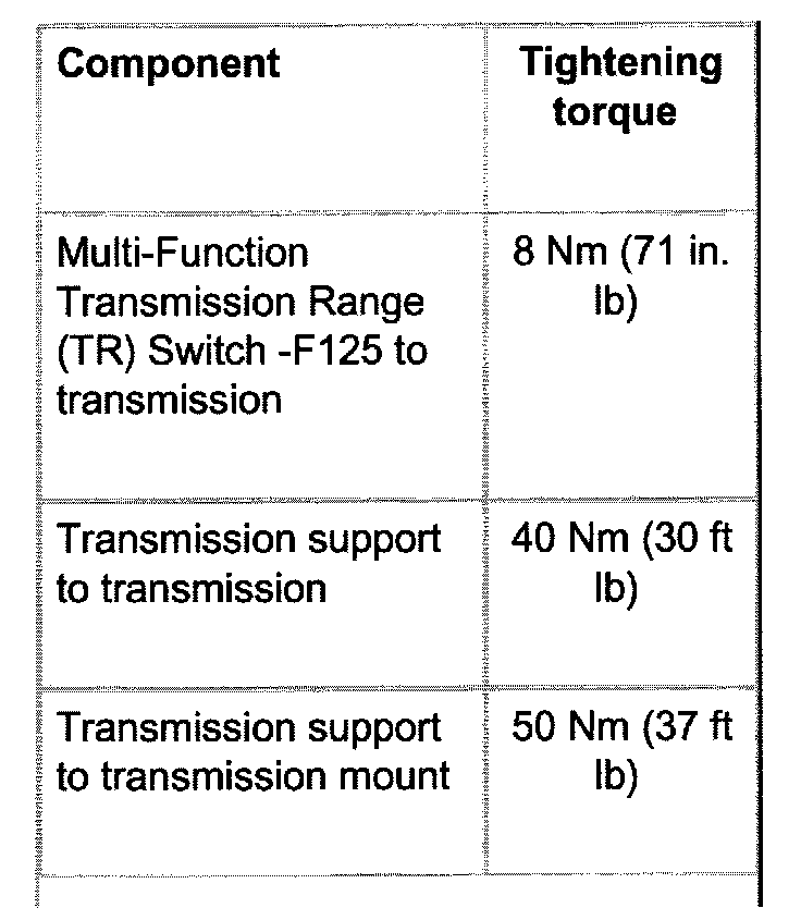 ^ Remove Multifunction Transmission Range (TR) Switch -F125 at transmission and pull off selector shaft.