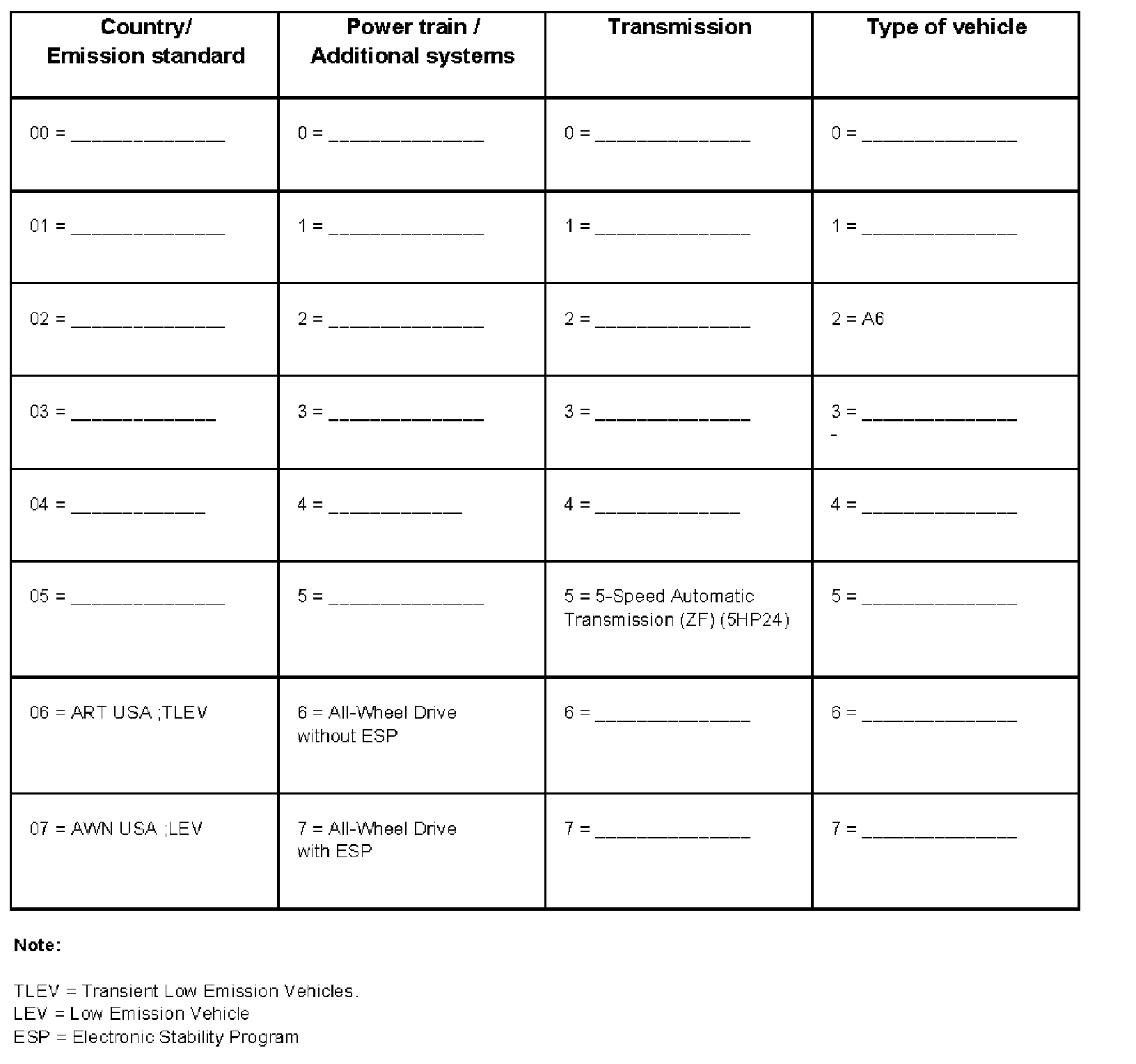 - Coding is checked via a VAG 1551 Scan Tool or VAS 5051.