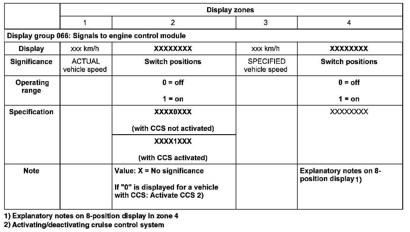 - Perform test drive to establish whether or not switch positions are shown in display zone -4-.