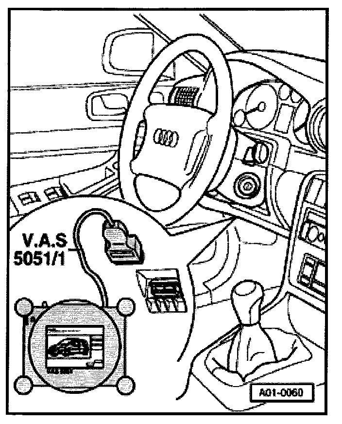 - Connect VAS5051 with diagnostic cable VAS5051/1 or VAG1551 with diagnostic cable VAG1551/3 A.