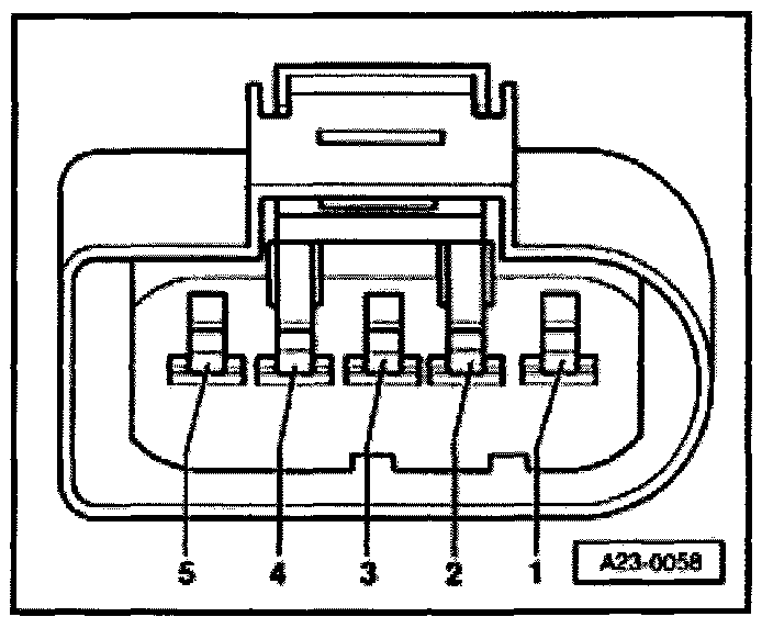 - Connect hand-held multimeter (voltage measurement range) between sockets 2 and 3 of connector.
