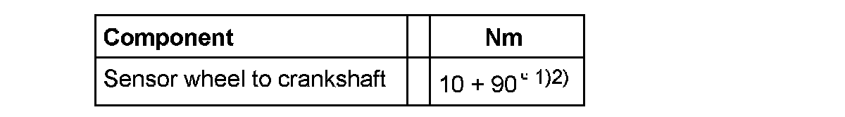 Sensor wheel to crankshaft 10 Nm + 90° 1)2)
