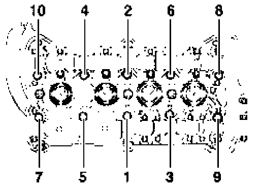 ^ Tighten cylinder head bolts in two stages in sequence shown as follows: