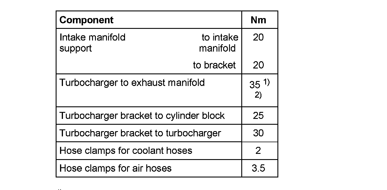 Turbocharger to exhaust manifold 35 Nm 1) 2)