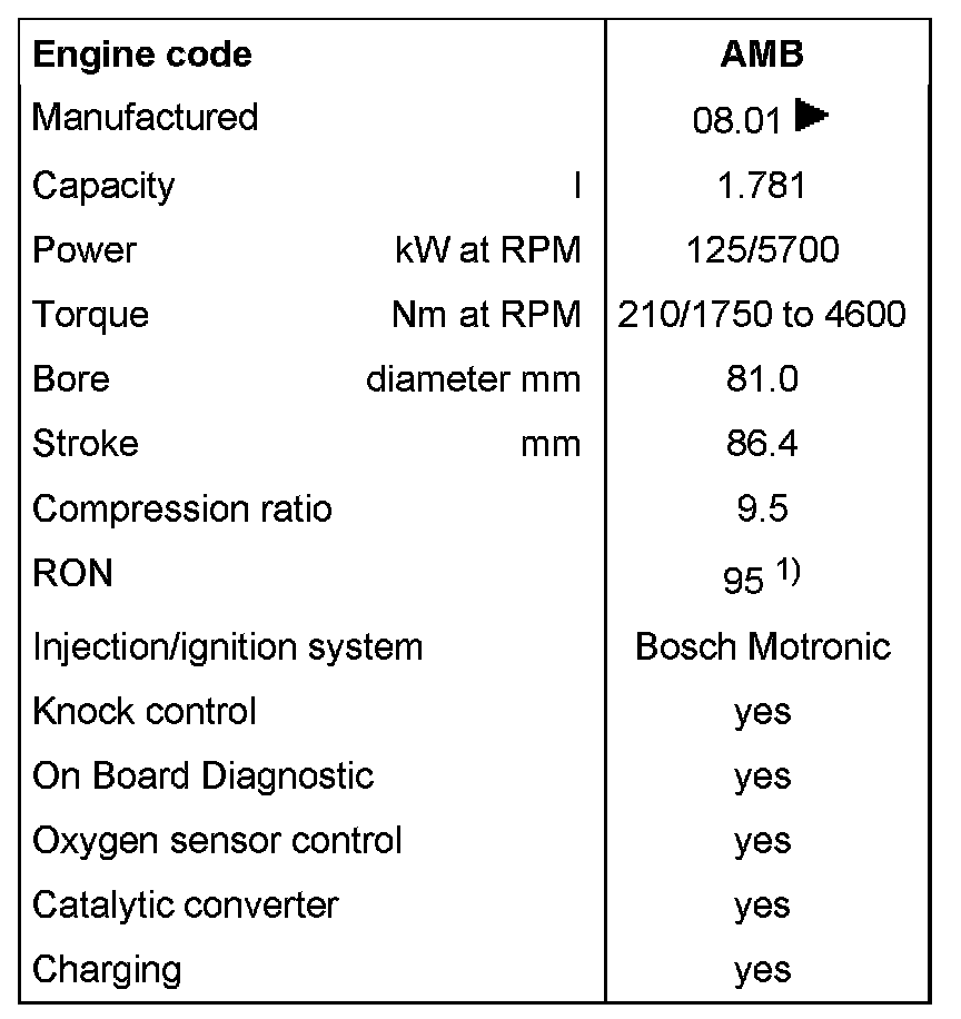1) Standard unleaded RON 91 also permitted, however reduced power.