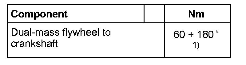 Dual-mass flywheel to crankshaft 60 Nm + 180° 1)