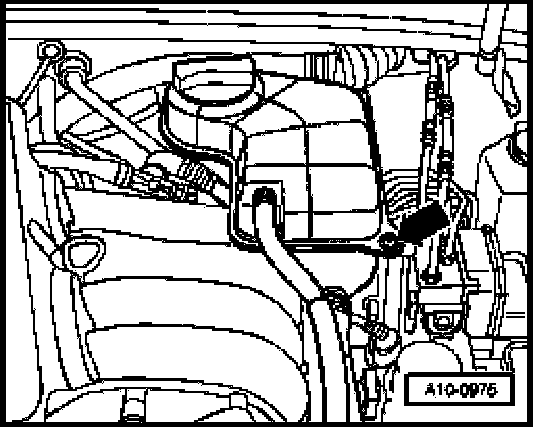 NOTE: Coolant reservoir screw (arrow) must be removed and coolant reservoir must be placed to the side in order to access harness connectors. The coolant hoses remain connected.