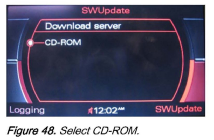 Final Software Update1. Eject CD#1 and insert CD#2 of CD bundle 4F0 998 961 in the single CD drive or in the first slot of the vehicle's CD changer.