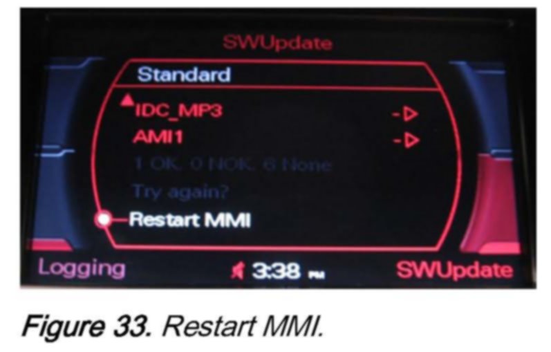 Firmware Update1. Insert CD #1 of CD bundle 4F0 998 961 in the single CD drive or in the first slot of the vehicle's CD changer.