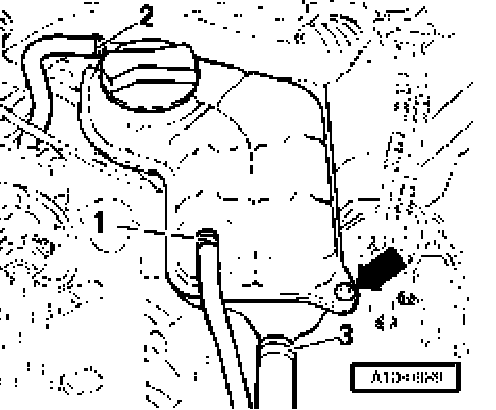 ^ Tie coolant expansion tank with connected coolant hoses -1 to 3- to side.