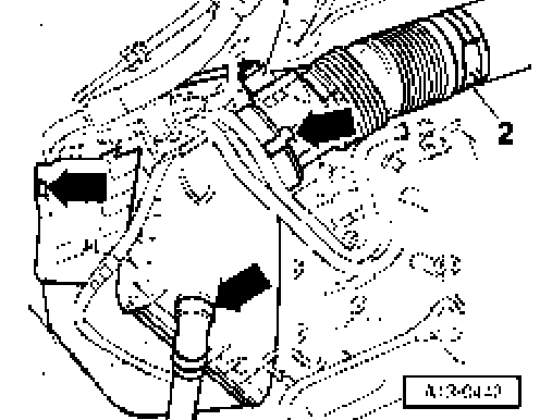 ^ Remove air guide hose -2- together with Mass Air Flow (MAF) sensor.