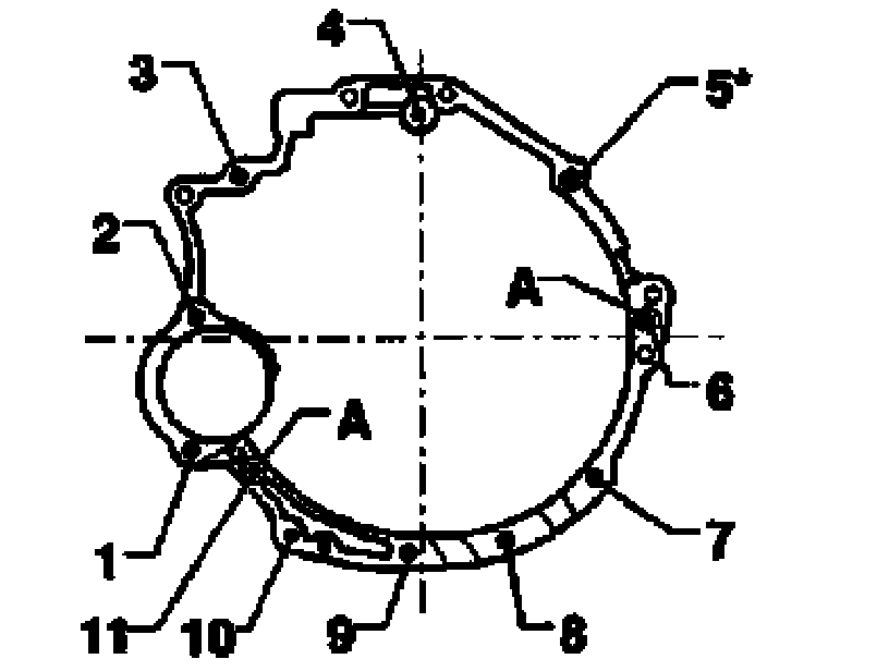 Engine/ transmission bolted connection (transmission flange face).