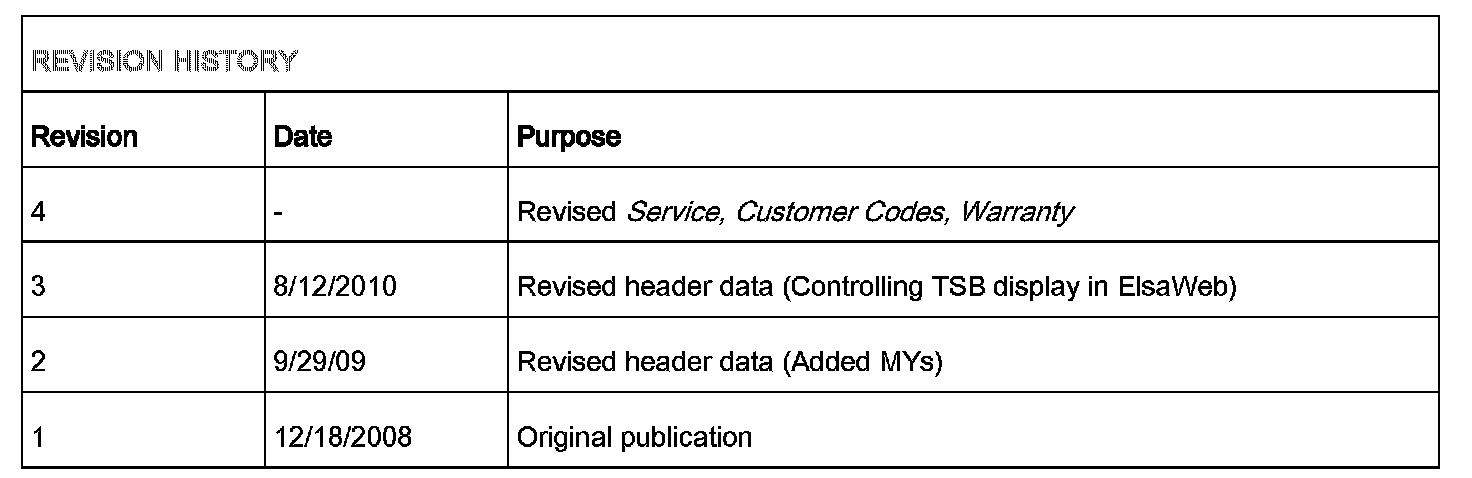 All parts and service references provided in this TSB are subject to change and/or removal. Always check with your Parts Department and service manuals for the latest information.