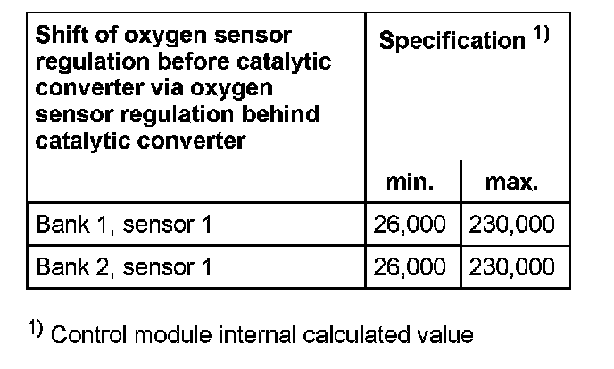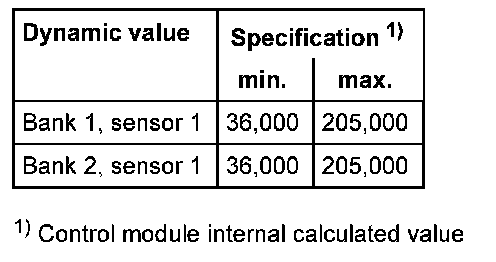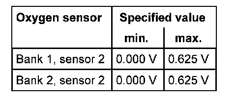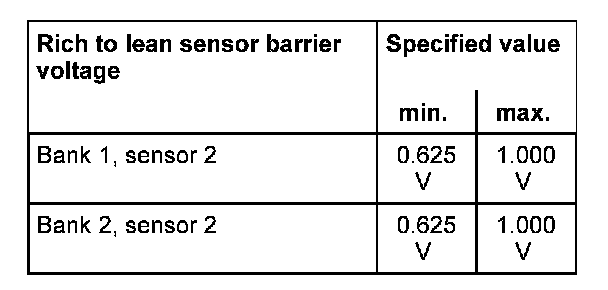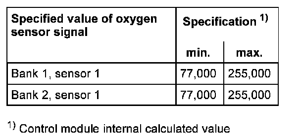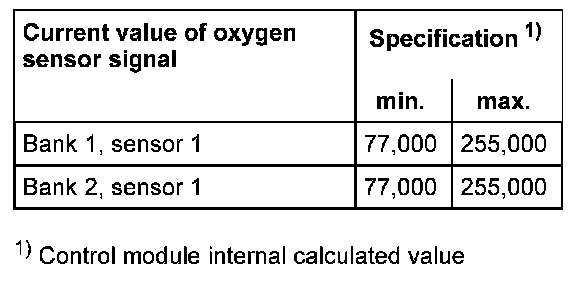 The values of the individual oxygen sensor signal outputs must reach the specified value or must be within the min.- and max.- limits.