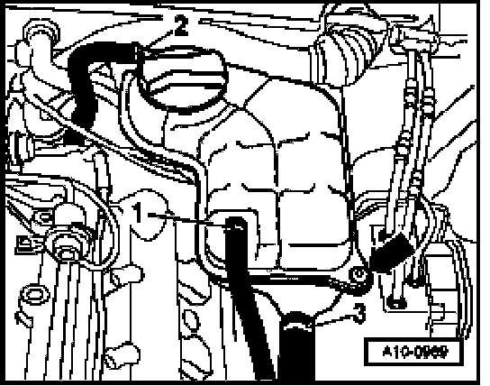 NOTE: Coolant hoses -1- to -3- remain connected.