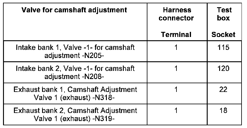 Solenoid Valve For Camshaft Adjustment, Checking