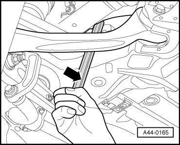 - Slide the subframe to a suitable position using a plastic coated tire iron - arrow -.
