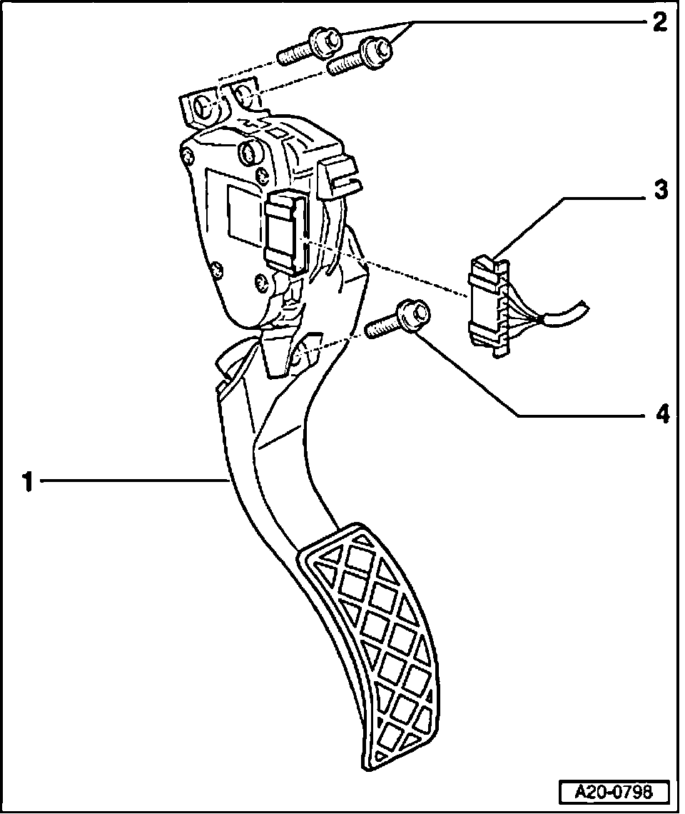 with Throttle Position (TP) Sensor -G79- and Sender -2- for accelerator pedal position -G185-