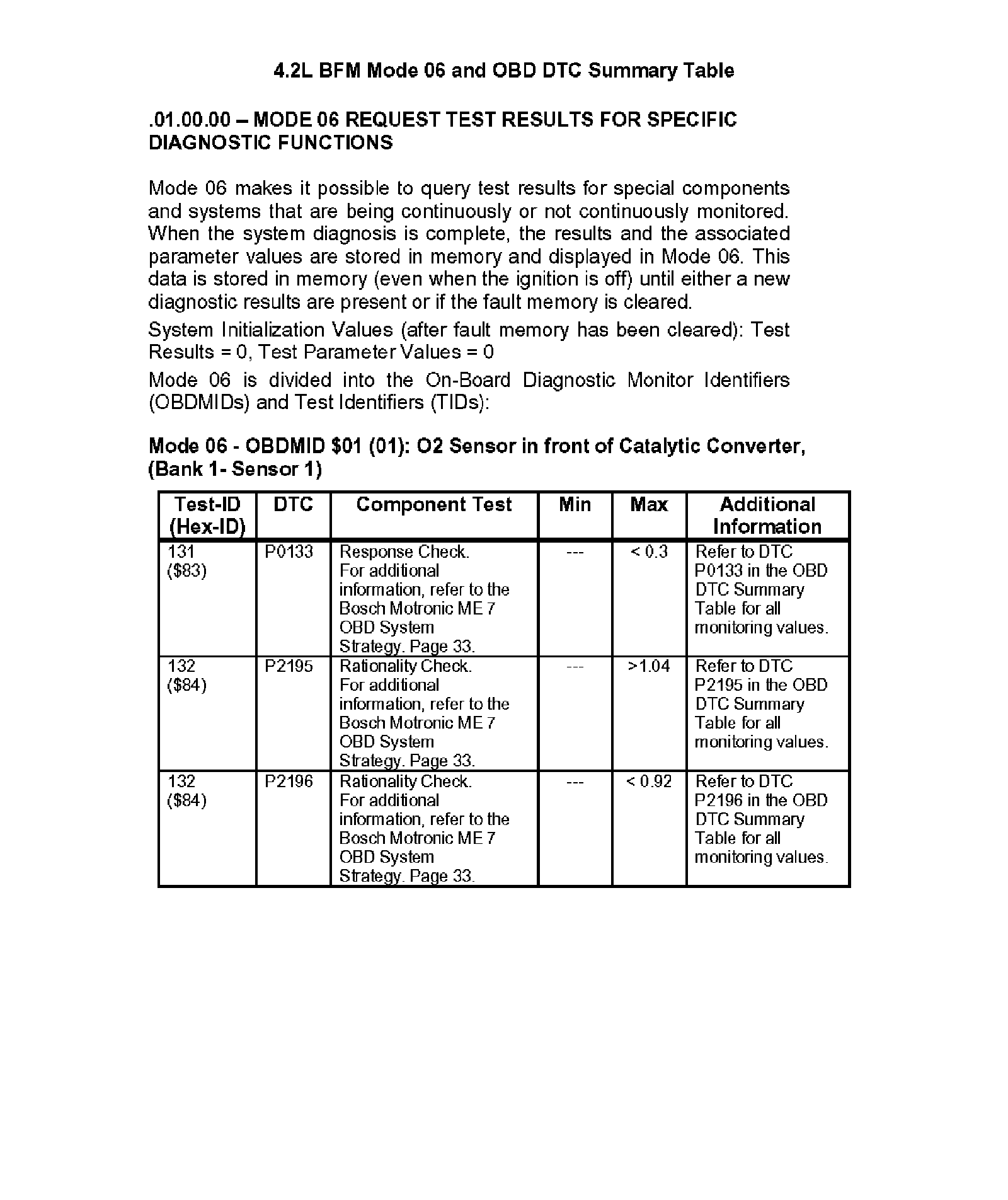 Mode 06 OBDII Testing Information