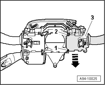 - Remove windshield wiper/washer switch (E22) - item 3 - from steering column switch module - arrow -.