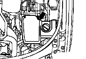 - Remove power steering reservoir cover (arrow).