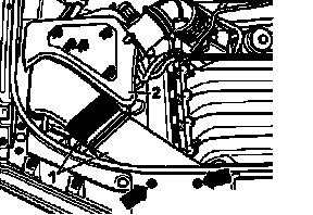- Remove bolts (arrows) and coolant expansion tank -2-.