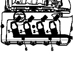 - Remove bolts -5- and -6- at left cylinder head.