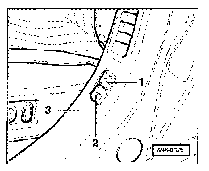- Using a small standard screwdriver, unlock the holding clips of the switch -1- (trunk release) or -2- (interior monitor) and push forward out of the trim panel of the B pillar -3-.