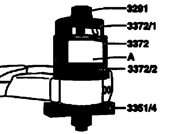 ^ Pull in bushing -A- until 3372/1 thrust piece is flush with upper edge of 3372 installation device.