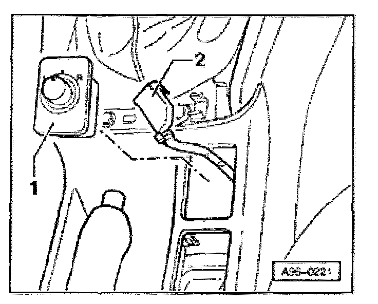 - Disconnect electrical harness connector -2- at mirror adjustment switch -1-.