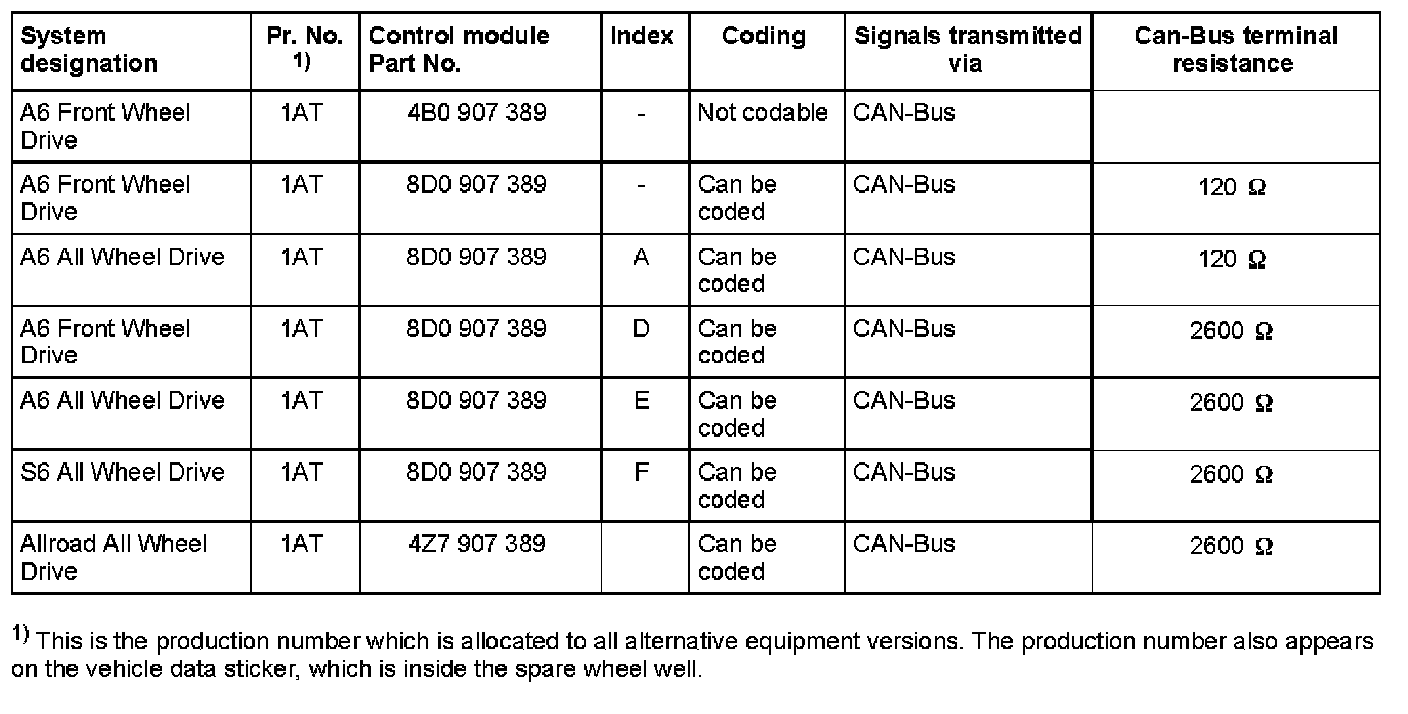 Note: Also refer to the Parts List for the correct ABS control module (w/EDL) J104- for the vehicle.