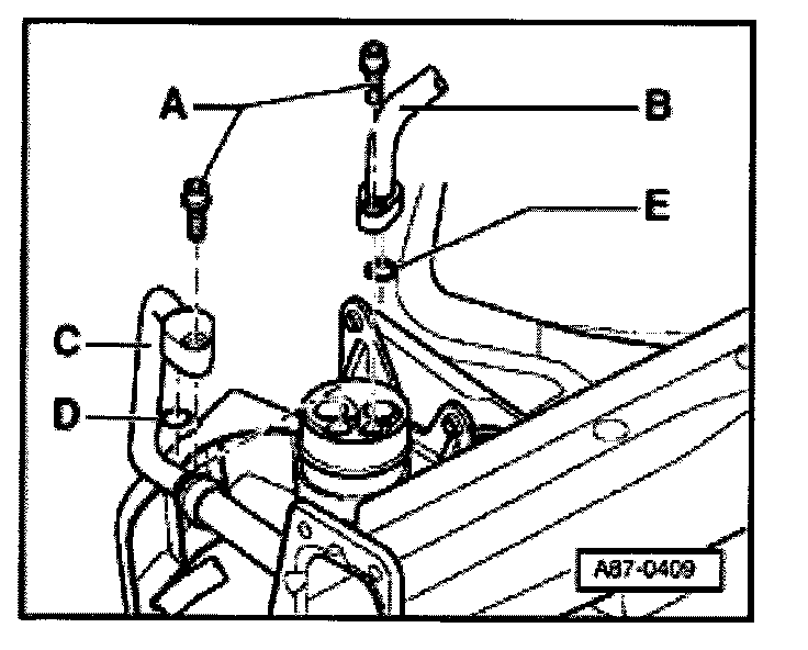 - Remove refrigerant line -E- (tightening torque: 40 Nm).