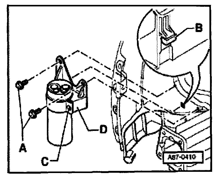 - Remove refrigerant line -B- (tightening torque: 40 Nm).