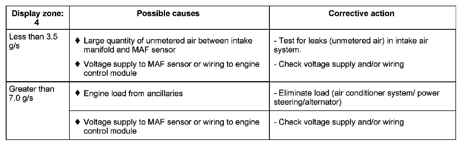 NOTE: Voltage supply to MAF sensor is from fuel pump relay. If battery voltage is not present: