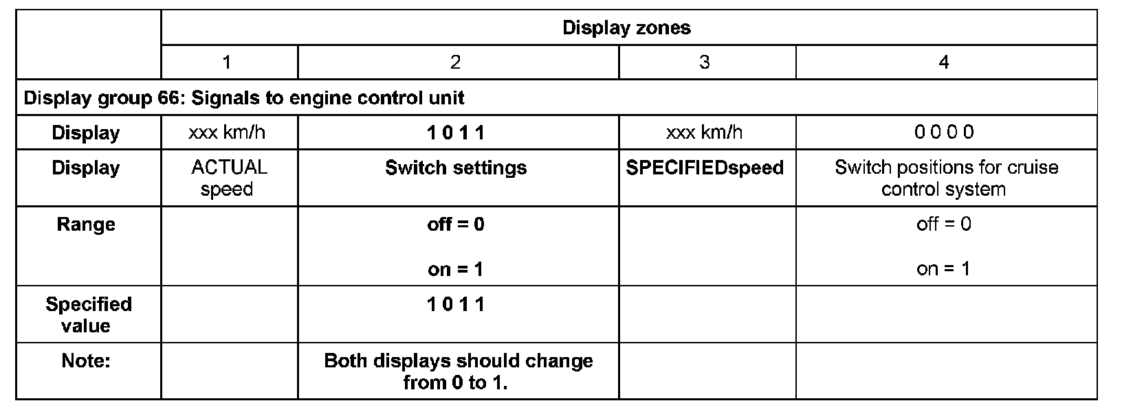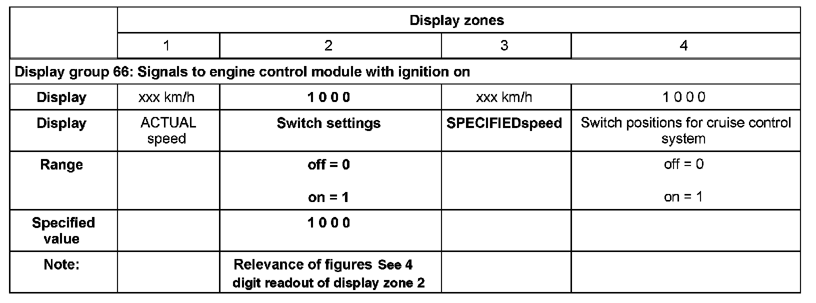 Meaning of 4 digit readout of display zone 2: