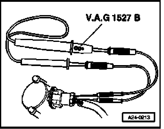 - Connect voltage tester e.g. V.A.G 1527 B with measuring probes and connector adapters from V.A.G 1594 A between socket 2 (CMP sensor signal) and socket 1 (B+); the harness connector remains connected.