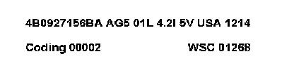 The TCM identification depends on the manufacturers status (data status). A control module identification may appear that is different than that in the example. For the correct TCM application