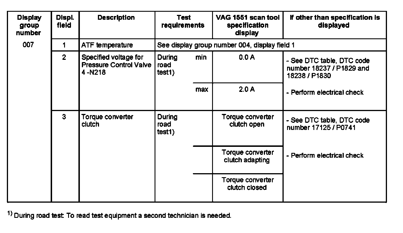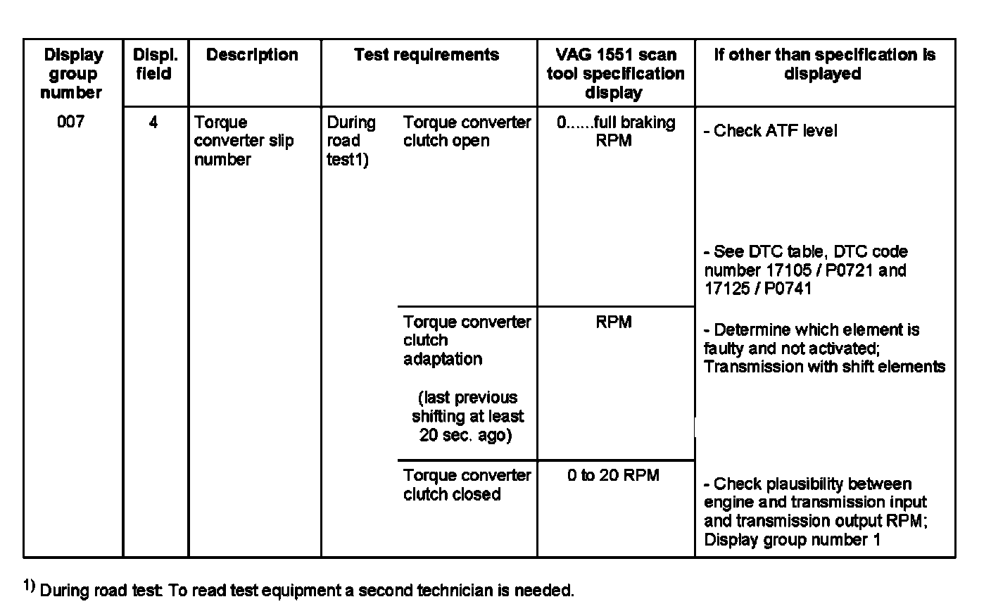 ^ "Torque converter clutch adaptation " ^^The values shown apply to the "adapted condition" of the torque convertor clutch. Under un-favorable conditions (for instance acceleration on a NO this condition is reached only after 20 seconds after completed shifting. During this adaptation phase slip values of up to 350 RPM can be reached.