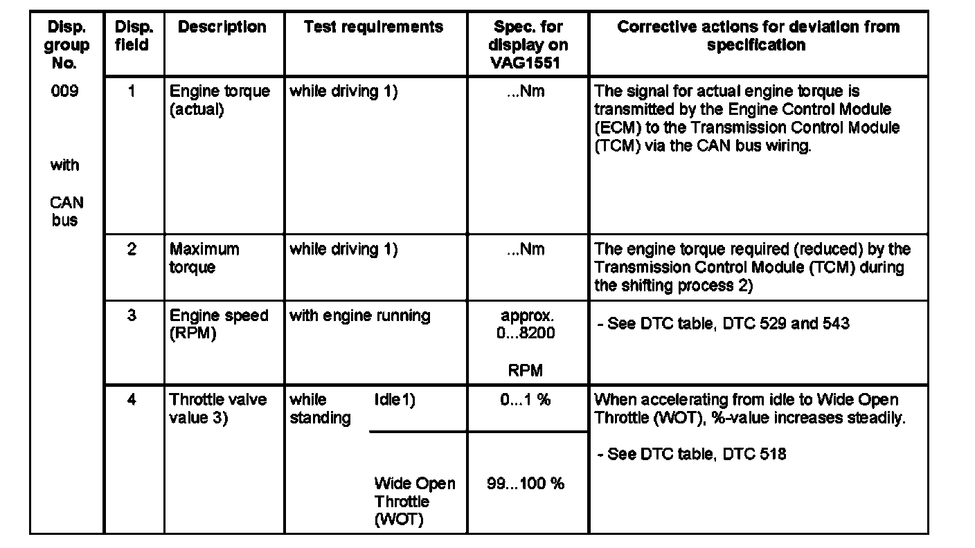 ^ This display group number 009 is only valid for vehicles with CAN bus, refer to display group number 009 for vehicles without CAN bus. A)