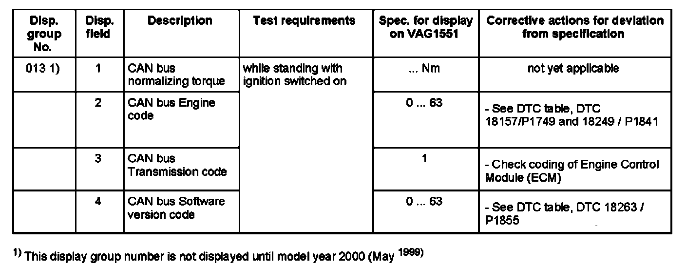 ^ Display field 2 and 4: When replacing the Engine Control Module (ECM), the same indication that appeared for the old control module should appear after installation. If this is not the case, the wrong Engine Control Module (ECM) is installed, or it is incorrectly coded.