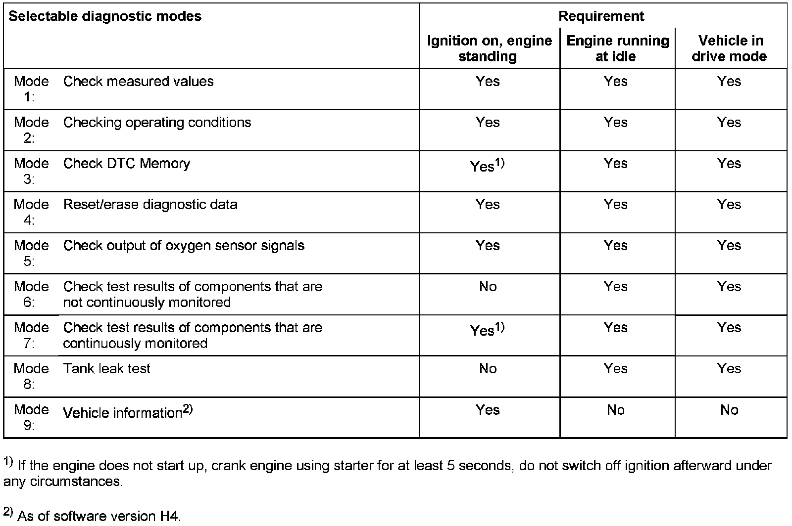 - The following diagnostic modes monitor all components and systems which influence the emission quality.