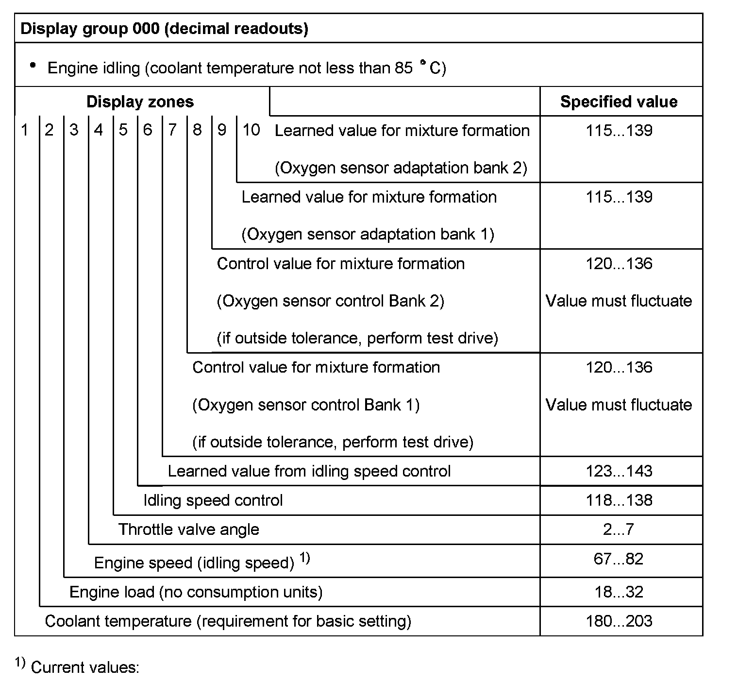 - Allow engine to idle for a few minutes; coolant temperature at least 85 degrees C (display zone 1: at least 180).
