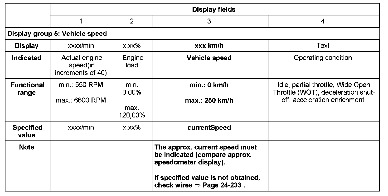 - Check specified value for vehicle speed.